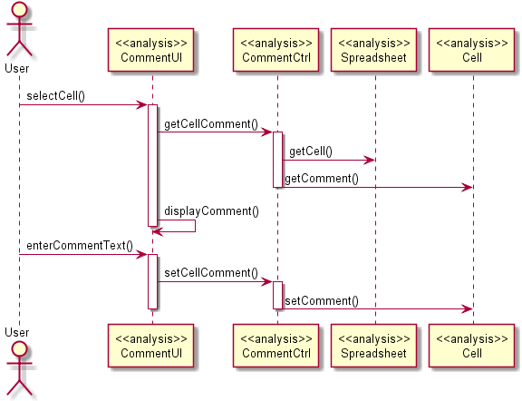 Use Case "Enter Comment on Cell": The user selects the cell where he wants to enter a comment. The system displays the current comment of that cell. The user enter the text of the comment (or alters the existing one). The system saves the comment of the cell.