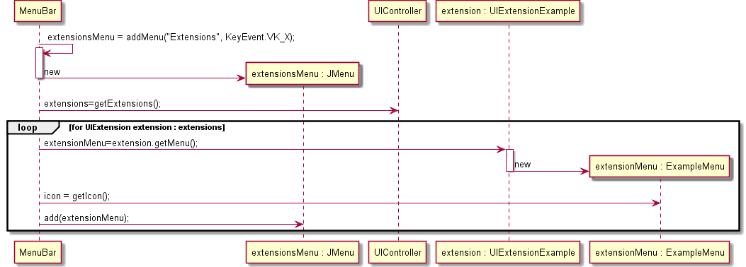 All the extensions are loaded dynamically by the ExtensionManager at application startup.